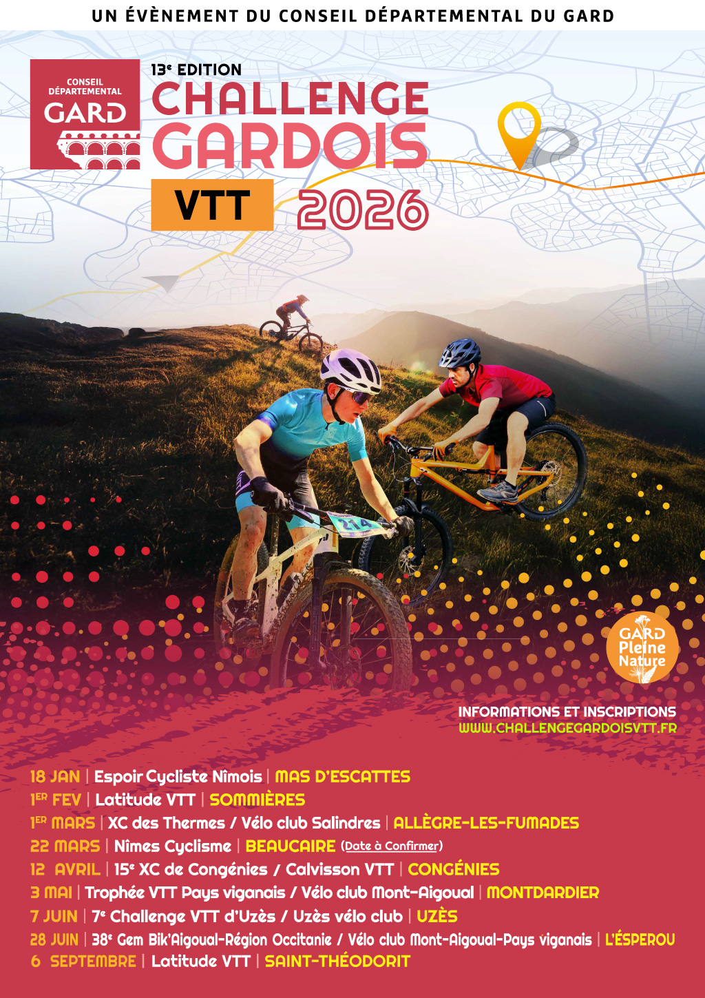 Pour 2026 le Challenge Gardois VTT vous propose à nouveau neuf manches